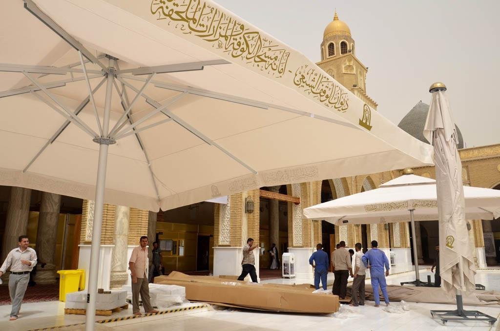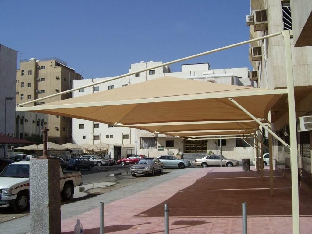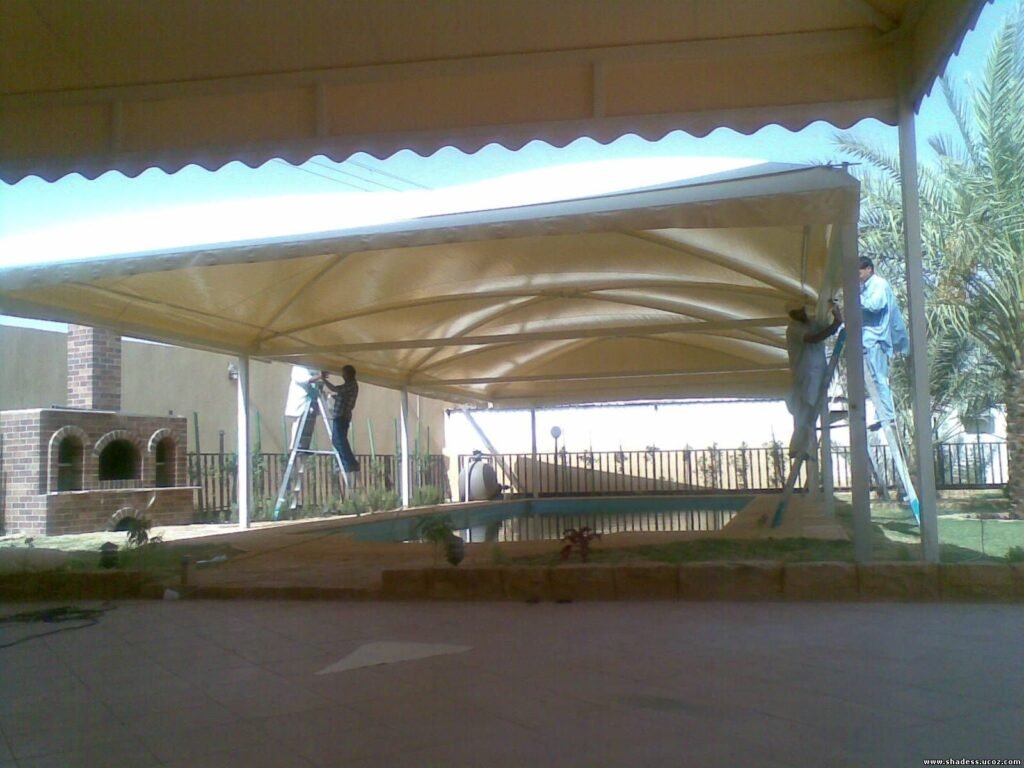 : يتم تثبيت الأعمدة التي ستثبت عليها المظلة باستخدام البراغي أو الأسمنت حسب نوع المظلة. تثبيت الإطار الهيكلي: يتم تركيب الإطار المعدني أو الهيكلي على الأعمدة، والتأكد من أنه مستوي وآمن. تغطية المظلة: بعد تركيب الإطار، يتم وضع غطاء المظلة وتثبيته بشكل محكم لضمان ثباته ضد الرياح